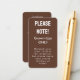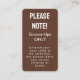 Our vertical Please Note Card from the Rustic Harmony Collection features an elegant design with a versatile earthy brown background that can be customized to any colour of your choice. At the top, the caption "Please Note" is prominently displayed, followed by a "Grown Ups Only" notice.