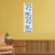 Measure child's growth against rising blue and white bubbles. Bubbles look three dimensional. Yellow lines at 2 feet (measure from floor), 3, 4, and 5 feet. Inches marked between lines as 1,2,3,4,5,6,7,8,9,0,1,2 (on yellow line).