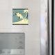 Cette image vintage a une grue à thème asiatique qui passe devant une vague océanique qui s'écrase. L'arrière - plan est fait en bleu tacheté avec une bordure noire. Voir mon magasin Art by MAR pour apparier les produits avec ce design.