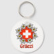 Stylized edelweiss surround a Swiss flag with the friendly Swiss greeting below.