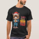 A grumpy-looking cat wearing a Santa hat and holding a coffee cup. Perfect for cat lovers who appreciate a bit of humour.
