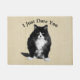 A funny Grumpy Cat designed personalized door mat offering a grumpy cat design sitting in the center of the mat with the wording "I Just Dare You" placed in an arc around the top half of the mat. All the wording can be personalized with your own grumpy cat wording ideas. The background of the mat has been set to a light beige color. The door mat measures 18" x 24" and comes with a non-slip rubber underlay. This fun loving cat themed door mat is sure to make your guests smile.