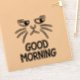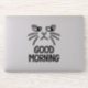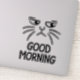 This sticker features a black and white illustration of a grumpy-looking cat with the text "GOOD MORNING". It's a fun and relatable way to express your feelings about mornings.