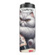 This humourous image features a fluffy, grumpy grey cat with piercing orange eyes, tightly hugging a bottle of wine with a "Happy Valentine's Day" label. A wine glass, a red rose, and floating hearts surround the cat, creating a funny and sarcastic take on a Valentine's Day celebration, emphasizing the cat's apparent preference for wine over romance.