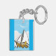 Grumpy Cat on a Sailboat Funny Nautical Cartoon Keychain