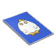 A chubby, yellow chicken with a bored expression is draped in a ghost costume, with two cut-out eye holes. Despite its spooky outfit, it looks completely unbothered, as if even haunting people is too much effort.