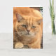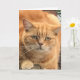 This blank greeting card features my photograph of a funny looking grumpy ginger cat, which was balanced either side of a narrow garden fence. I was very amused by the look on the cats face.