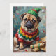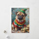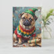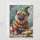 Grumpy Pug Dog in Elf Hat Funny Christmas Art Holiday Card