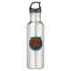 A water bottle featuring a cartoon of a rust red octopus with a mean frown, curling tentacles spread in all directions and fleshy coloured suckers exposed. A shoal of fish stream past in the background. For fans of octopuses and cephalopods with attitude. Personalize with a simple change to the editable text which curves around the image. Customize it to change the colour of the ocean green background circle which surrounds and shows through the semi-transparent inner background.