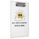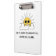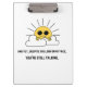 Clip board with grumpy sun and clouds, funny quote, "And yet despite the look on my face, you're still talking." Would make a fun gift for men or women, a student or coach anyone using a clip board at home or work.