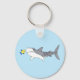 Keychain with a grumpy tiger shark and a cute yellow fish with blue fins. The design is customizable.