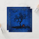 Stunning Halloween party invitation shows a leafless tree, a flying black bat, and a glowing orange pumpkin beneath the bare tree. The background is blue, distressed grunge. Create a spooky, eerie mood with this invite. Two-sided. The text on the front is customizable. Personalize it to make it your own. Cool.