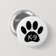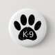 A cute cartoon style dog paw print and text with grunge and distressed effect applied to image. Custom buttons with K9 theme. Gift idea.