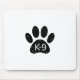 A cute cartoon style dog paw print and text with grunge and distressed effect applied to image. Custom mouse pads with K9 theme. Gift idea.