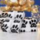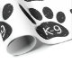 A cute cartoon style dog paw print and text with grunge and distressed effect applied to image. Custom wrapping paper with K9 theme. Gift wrap and decor idea.