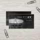 This musician business card features a cool image of a snare drum set against a dark grungy background. Customize with your personal information and make a statement with these hip business cards.