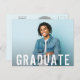 Add your favourite photo to these invitations with a modern gunge style white text overlay GRADUATE and mail as postcards for your graduation party or graduation ceremony. Add the same or different photo on the back address side with your information. More designs in our store.