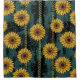 A bold seamless abstract pattern shower curtain combining bright sunflowers with decorative chain-style vertical stripes on a dark, gritty background. Vibrant yellow petals and deep orange centers contrast sharply with distressed teal and black textures, creating a modern grunge aesthetic. The cracked, scratched backdrop enhances the edgy, urban feel, while the repeating floral-and-chain layout adds a striking graphic rhythm.