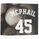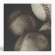 Old grungy baseballs sitting on a shelf. Customize with player name and jersey number.