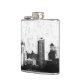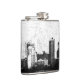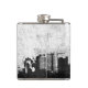Grungy city background in black and white hip flask
