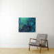 A grungy mixed media design in a turquoise and yellow colour palette, on a dark background.