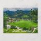 View of the Gruyère village and valley in Switzerland. Travel postcard, with editable title