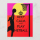 Goal shooter silhouette, keep calm and play netball on a colorful custom postcard. Create your own personalized cards.