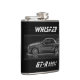 A cool flask with a hand-drawn comic art style print of the GTR BNR34