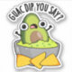 Guac Dip You Say Funny Guacamole Dip Pun features a cute avocado asking "What did you say?" Perfect Puns gift for family and friends who love cute guacamole dip puns.