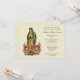 Avec l'invitation traditionnelle de la Première Sainte Communion catholique avec une image traditionnelle de Notre-Dame de Guadalupe avec des roses. Sur le dos est une citation d'écriture avec une image en noir et blanc de l'Hôte, Chalice, & blé représentant le Pain de Vie, Jésus. L'arrière-plan des deux côtés est un design de dentelle ecru très léger. Les polices, les textes et les images peuvent être modifiés.