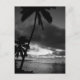 A black and white photograph of the sun setting on the tropical beaches of Guam.