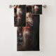 It was advertised as NAVY blue and the color sent was greenish blue. I am disappointed in this product. Quality and printing are great as are all my other orders. As you can see in picture the tea towel on right is perfect, hand towel not so much! Print was awesome and just as ordered