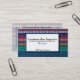 A business card for an import gift shop or store. This card features a traditional Guatemalan weave as the background. The textile is woven in multi colours and is very intricate.