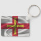 Keychain with the flag of Guernsey in wavy fabric style design. This design features the Guernsey flag colours and design with a beautiful waving material textured effect. This flag design is a great way to show you are proud to be from Guernsey.