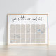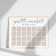 Let guests take their best guess at baby's arrival date with this customizable poster for your baby shower. Modern minimalist design features "guess the arrival date of baby [Name]" at the top, with four weeks of date boxes in gender neutral pale beige for guests to write in their guesses. Use the template fields to number your dates to make this poster work for any month(s), and move the due date around if needed by accessing the design tool beneath the text templates.