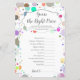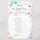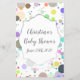 This baby shower game card features a script modern font on multicolor dots background, perfect for a baby boy, baby girl or a surprise! Use this card for your gender reveal party!