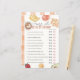 This cute "guess who bride or groom?" bridal shower/brunch game card features a cream background with brunch foods such as waffles, coffee, croissant, avocado, orange, bananas, egg, blueberries, and strawberry. The reverse side features a white background with gingham check pattern in orange. Personalize for your needs. You can find matching products at my store.