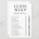 This lovely modern Guess Who? bridal shower game sheet is perfect for any shower. This fun and easy game is sure to bring lots of laughter to any bridal shower. Simply give a sheet to each guest (don't forget the pens) and let the fun begin! You'll be amazed at how many things people know about the bride and groom. To make this game your own simply select Personalize this template and type in the bride's name and the groom's name.