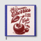 This design features a playful, vintage-style cherry illustration in deep red tones, accompanied by bold retro typography. The text reads “My Delicious Cherries” with a smiling cherry mascot above, along with fun phrases like “Yumi Yumi” and “Cute Fruit.” The large, detailed cherries and leaves give it a nostalgic fruit-market poster vibe, while the overall look blends sweetness and charm with a classic, hand-drawn aesthetic.