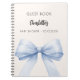 Baby shower guest book for a baby boy featuring an elegant blue bow design. This personalized guest book is a beautiful way to capture messages, advice, and well wishes from friends and family during the baby shower celebration.