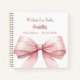 A white background colour. Decorated with a large pink bow. Personalize and add the name and date. Title: Wishes for Baby.