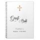 A white background colour, decorated with a golden cross. Add a name and a date. The text: Guest Book is written with a modern hand lettered style script.