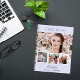 Create your own unique photo collage. Use four, 4 of your favourite photo. Personalize and a name and age/dates. A lavender, violet background colour, black text.