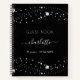 A guestbook for a feminine and glamourous 21st (or any age) birthday party. A stylish black background with faux silver stars. Add your name, age 21/text.