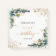 A white background color. Decorated with eucalyptus greenery, golden foliage and faux gold glitter dust. Add a name, age and a date.