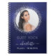 A guestbook for a feminine and glamourous 21st (or any age) birthday party. A stylish navy blue background with faux silver glitter sparkles round the photo. The blue colour is uneven. Add your name, age 21, date and a photo.