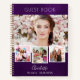 Create your own unique photo collage. Use four, 4 of your favourite photo. Personalize and a name and age/dates. A purple, uneven coloured background, white text.