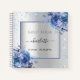 Faux silver looking background decorated with navy blue and light blue florals, flowers, and faux glitter, sparkles. Personalize and your name and date.