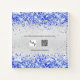 A faux silver background with royal blue confetti. Personalize and add your name, age 21, date. The name is written with a modern hand lettered style script.