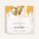 A stylish white background with faux gold glitter drips and dust. Decorated with golden balloons. Personalize and add a name, age and a date. The name is written with a modern hand lettered style script with swashes. To keep the swashes only delete the sample name, leave the spaces or emoji's in front and after the name.